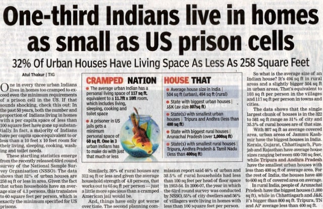 - One-Third Indians Live In Homes As Small As Us Prison Cells – Times of India, 25.11.2008