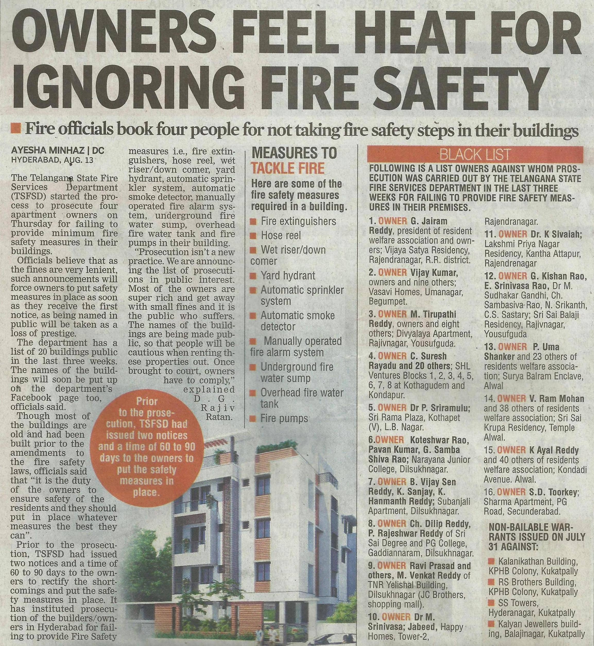 - Owners feel heat for ignoring fire safety – Deccan Chronicle,14-8-15